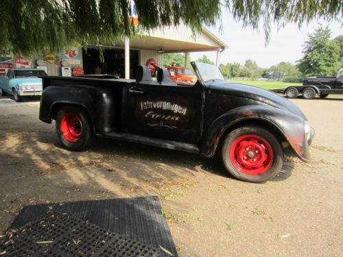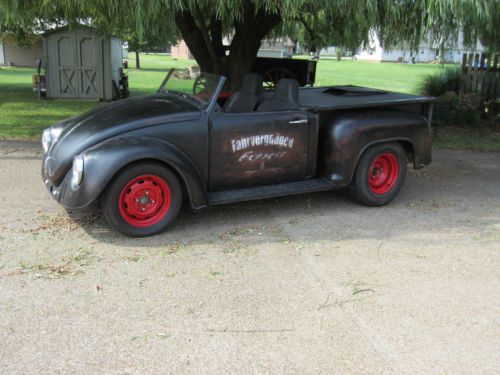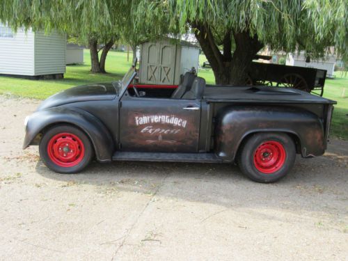 1969 VW beetle, Fahrvergnugen Express, this truck is the result of too much time and too much beer and this is what come from it. It was a 1969 rust free beetle and the bed is a late 50's step side, and the two were put together. If you do not like attention this truck is not for you. People will walk past 100,000 dollar cars to get a look at this one of a kind piece. I do not know if you call it a rat rod, volksrod or something in between but it is just plain cool. Has new patina paint and had lettering and striping looks great. runs and drives well. has disc brakes and drop spindles on the front. has no rust in floors or spare tire area. Get something that know one else has. it is a real must see. I am listing for my friend ask any questions you may have.