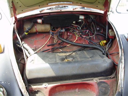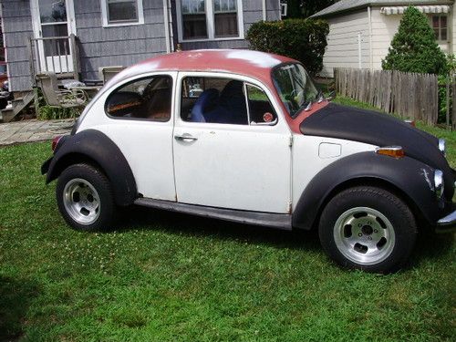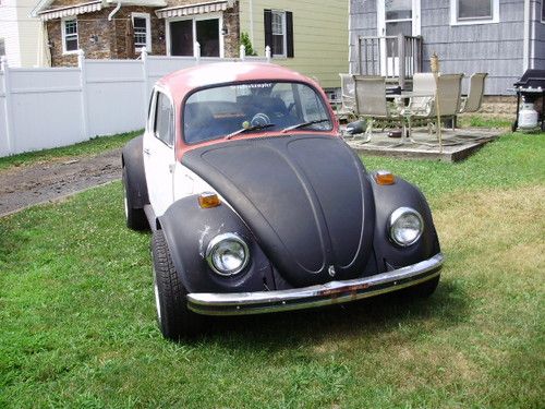 1970 Volkswagen ready for whatever direction you want to take it. Roof was damaged by a tree limb. It is easily repairable or don't feel bad about chopping it to build a volksrod. Sound body with very little rust compared to most of this vintage. Heater channels are good with only some repair needed on the driver side rear section. Some rust in both lower 1/4 panels. Needs both pans replaced. Doors open and close fine and have no rust. Door weatherstrips are new. Needs driver side window regulator. Interior door panels included. Front bucket/spare tire well has repaired damage but car comes with new front tub assembly. Ball joint front end with new ball joints and front camber compensators. Parts for lowering the front suspension included. Fiberglass fenders. Fronts are old school flared. Pass side has repaired damage that needs minor finish work. Rears are 3" wide stock looking. Wheels are 15X8 slotted aluminum in very good condition. Chevy bolt pattern on adapters to VW 4 lug pattern. Tires are Firestone 235/60/15 in like new condition. Stock 4 speed trans with no issues on poly mounts is in car. Comes with a Porsche 901 5 speed trans that we were going to install. This installation requires some fabricating and welding and is best done with the body off the pan. There is no engine. Car was on the road last year with a worked motor with dual Webers. Engine was sold. Brakes are about 50%. Master cylinder is new. All brake lines are good - no rust. Complete vehicle wire harness was replaced last year is fully functional. Has removable seat harness bar. Rear shelf was opened for a fan operated oil cooler. Full gauges including monster tach with shift light. Comes with boxes of spare lamps, lenses, and various small parts. Vehicle is sold as-is, where-is, with no warranty. Feel free to ask questions. Additional pics available by request. Shipping to be arranged and paid for buy the buyer. I can assist the your carrier with loading. Clean NJ title.