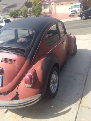1970 VW Bug project. Clear title, 1600cc engine. Runs, current registration until Dec 2014. All lights work, EMPI wheels. All stock with low back seats that need to be re-upholstered. The car has rust by the battery (hole) and on the passenger door and deck lid. Brakes need to be bled. Thanks for looking!