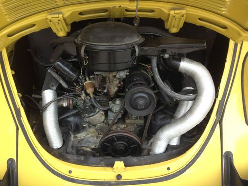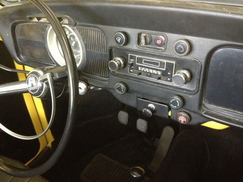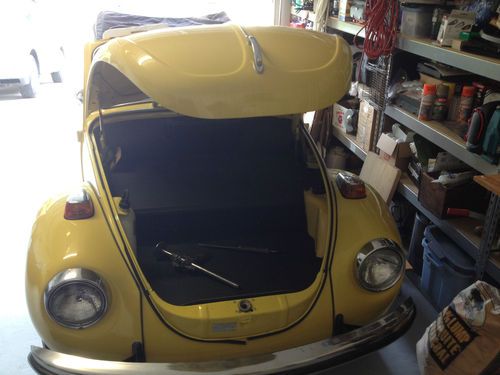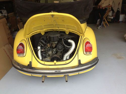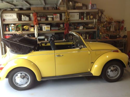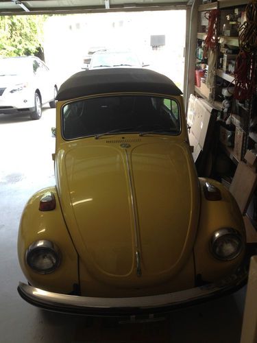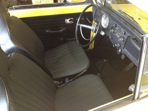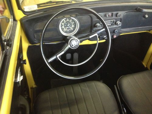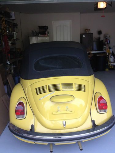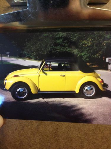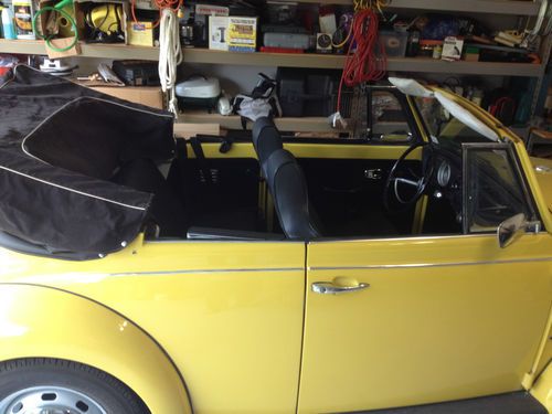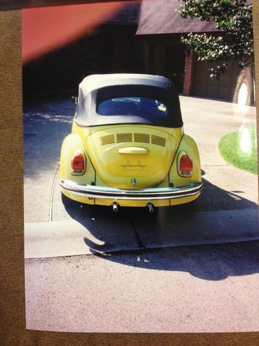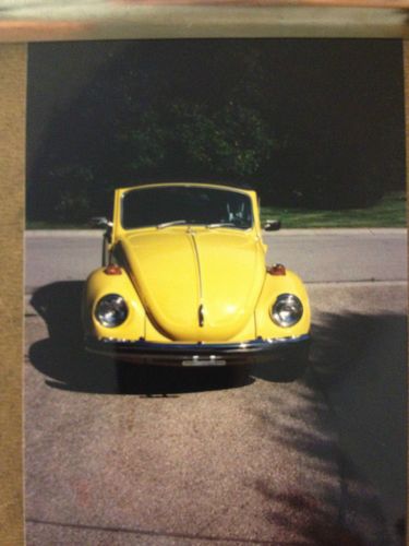 This 1971 Canary Yellow Super Beetle Convertible has been in our family for over 35 years, the last 30 has seen it sitting either in our garage or in a modern, covered and secure storage facility. It can be described as having been totally restored with new paint and a Karmann Factory 1500 cc 4 cylinder engine. There is a small dent on the right front panel above the wheel. Original cover for convertible top (when down) with original cassette player.