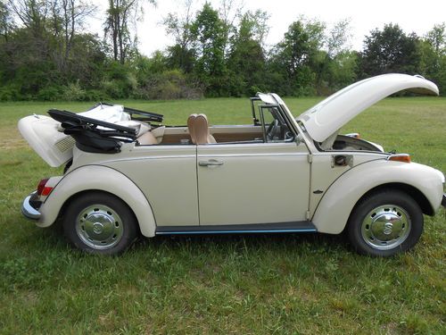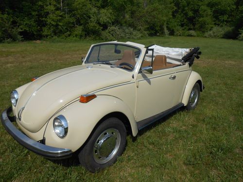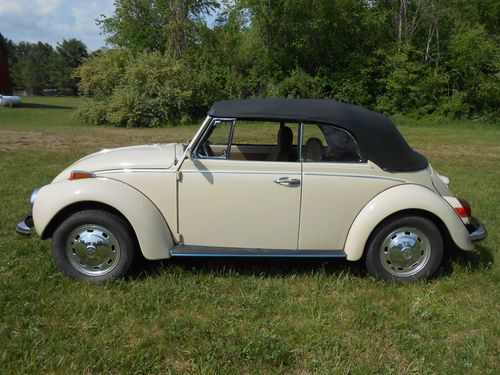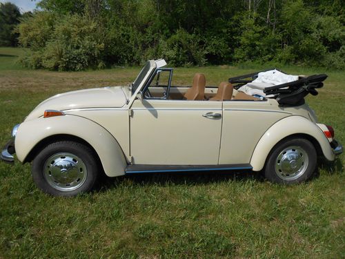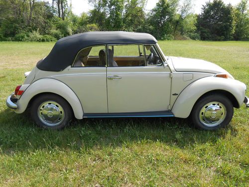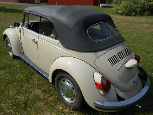 This gorgeous 1971 Volkswagen Super Beetle Karmann Edition convertible has a creamy Kansas Beige exterior with shiny chrome accents, complemented by a Cork leatherette interior and a black convertible top.  This vehicle has been well-maintained, garage-stored and driven in good weather conditions only. 71,222 original miles. Overall, this Beetle is in excellent condition with minimal signs of wear. Runs and drives great! Includes the original owner's manual!