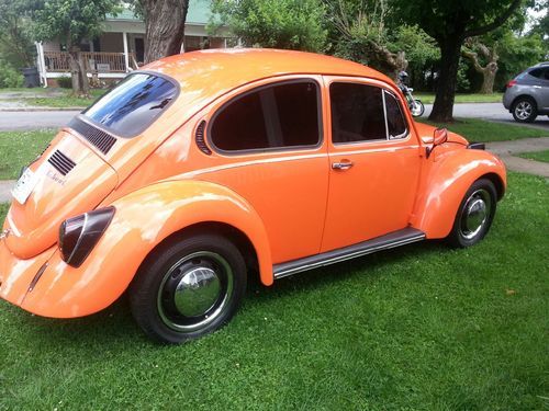 You are bidding on a 1971 V W Beetle. This car only has approx. 77000 original miles on the original 1600 series engine. The paint on this car is only a few yrs old and it has a few minor blemishes. The interior is black and has been approx 80% restored (it only needs the head liner and a few other minor things). We have the original bumbers and also have another set of bumbers. This bug runs and sounds great and is a very dependable daily driver.