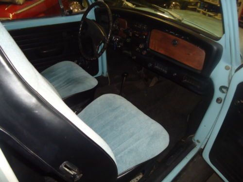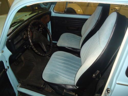 I am selling an Original 1973 Volkswagen Beetle.Volkswagen is in nice shape and was re-painted 20 years ago.Has been garage kept ever since.Paint still looks excellent and shines very nice.Has some dirt marks in the paint pass. roof.Car as you can see has steel rims painted the same color as the car.Running boards are in good condition and car has all exterior trim.Car runs and drives and was last inspected in Jan 2010.Car has 1600 12 Volt engine.Car has no exterior rust of any kind!!! Beleive the engine has the original motor for the car that was rebuilt around the same time it was re-painted.Car was driven very little after rebuild and has been stored inside since.Orignal Milage on car is 95,703mi.Car as you can see from the door sticker was produced in Nov.1972.Plastic lenses are spyder webbed but still look very nice.Will probably be able to find you new ones in the shop if car is purchased!!! Inside of trunk has spare tire and is hooked to original windshield washer bottle!! Trunk looks as nice inside as the outside of the car!!!. All wiring is in excellent shape and has been gone over as well.Interior of car is in real nice condition as you can see from the photos.Seats have been redone and look excellent!! Seats are blue velour with black backs and sides.Carpet and door panels in good conditon as well and also black in color.Car has brand new white headliner.It is a 4spd manual transmission-- it is a VW!!! Car has A/C and is complete but does need repaired--(Very Rare Option)!!! Everything works on the car,lights,turn signals,wipers,etc!! Car as you can see does have kind of a wood grain looking dash!!! Dash Pad nice no cracks. Volkswagen has a Radio/ Cassette player in it also.I beleive this is aftermarket.Also have a bunch of spare stock radio's and could find you one if needed!!! Car did have a aftermarket Muffler installed also.Car has been in dry storage for many years now and has been started frequently and warmed up!! Engine is in good running condition!! As I said before car runs and drives,just needs inspected!!! If you have any questions please ask.You can also call me about any other specific questions you may have about the car at (814)321-7157.I am selling this car for a friend and will do my best to answer any questions you may have!!! Car will be sold as is!!! Thanks again for looking everyone!!!!