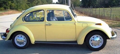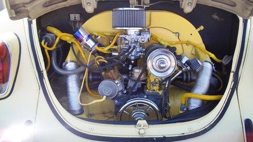 This is a very nice Volkswagen Beetle. I have been driving it to work because it gets better gas mileage than my truck. It starts reliably and cruises comfortably. It has an Autostick transmission. An autostick is basically an automatic clutch. When you move the shifter, the car autmatically engages the clutch. So, you do not need to know how to drive a stickshift transmission. You just move the shifter. The transmission is smooth and tight. This car was purchased for my daughter. I put a lot into it and she decided that she would rather not drive such an "old car." I believe the paint to be original and I believe there are only 54688 miles on the car instead of 154688. Nonetheless, the rebuilt engine and transmission have less than 200 miles on it. I rebuilt the engine to stop some oil leaks (I know, overkill). The person that rebuilt the engine found very little wear on the engine, just leaks. It does not leak at all now. There are some paint dings and scratches. Very little rust on the body. The floor pans are good except right behind the passenger seat, but ther are no holes in the pan. The interior is in good original condition (see pictures). The engine has been completely professionally rebuilt (new oversize pistons and cylinders, new heads, new crankcase bolts, new piston rods, new push rods, new crankcase bearings, new push rod covers, new seals and gaskets). The Autostick transmission has been professionally rebuilt. The car has a new brake system (front disc brakes, new reservoir, hoses, brake lines, master cylinder, wheel cylinders and pads). The car has a new CD player and new speakers in the rear in speaker boxes. I have fabricated a shift knob from a yellow "1" billiard ball. New trunk liner. New chrome engine parts. New air filter and housing. New breather on crankcase. New clutch disc, new torque converter. New battery. New engine compartment seals. New seat belts. New starter. To be fully appreciated, you probably need to see this car in person. If I were to keep the car, I would repair the windshield wipers (it's an electrical thing) and get it aligned, but other than that, I would just drive it.