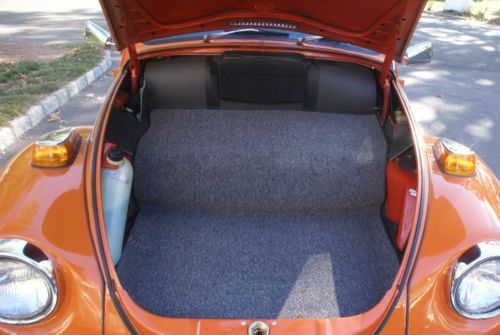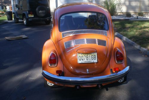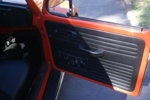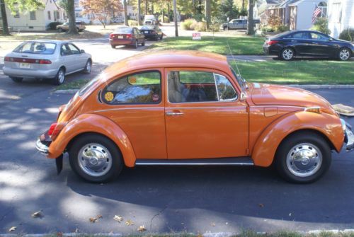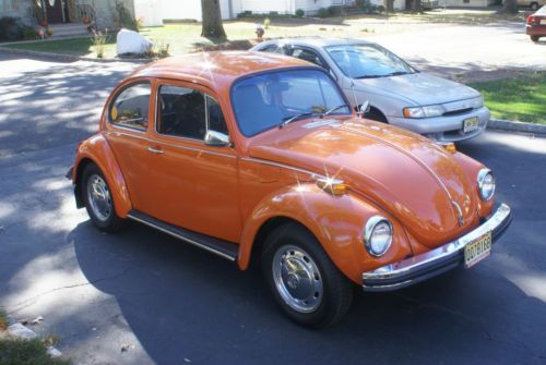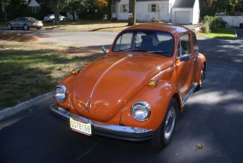 1972 Superbeetle, great restored running condition. Needs very little work for a complete restoration. If your are serious, please read on.... All rust on body, pan, wheel wells was professionally repaired by very reputable local VW shop including replacement of battery tray and front lower frame head. Very presentable older (5+ years) exterior paint (original red paint in interior and trunk), a few nicks and dings typical of a 40+ year old car that can be driven anywhere, but a real head turner standing 5-feet back or driving down the road. Strong 1600 Dual Port engine has no end play on main shaft. Good clutch and transaxle, car shifts very smooth in all gears. Transmission side and main seals replaced. Good CVC joints. New Solex carb, new correct distributor,new fuel pump, new exhaust system, new hoses and lines and engine wiring. Rebuilt starter, recent battery. Solid working heater boxes and channels, heat works perfect. All correct engine tin is in place with new engine bay seal and the thermostat and flappers work perfect, this car runs cool even after 100 miles on a hot summer day. All air ducts replaced, vents, cables and levers fully functional, even the defrosters work. Two-speed fan fresh air motor rebuilt and works as it should, wiper motor rebuilt and works, washer converted to electric pump. All NEW BRAKES just done including brand new drums all around, lines where needed and new front wheel bearings. Master and wheel cylinders all checked and in good non-leaking working order. New parking brake cables installed, handle rebuilt. New urethane front bushings and steering damper. New rear shocks, good non-leaking front struts. Tires on car have less than 3000 miles, comes with two extra new, unused tires, one mounted on extra rim and a brand new mounted spare tire in trunk, three extra tires in all. Gas tank fully cleaned and all lines and seals replaced, new sending unit installed, gas gauge works perfect. Car has NO gas smell inside or in garage, white plastic evaporator tank is intact and re-vented below car (sorry, the charcoal canister is long gone!) New TMI seat re-upholstery kit, front and rear. New 3-point shoulder belts and new rear lap belts. Nice original carpet and new mat set. Replaced interior door and rear side panels. Custom orange shift ball. New Dual stereo radio with SD, USB and Aux inputs, mp3 player/Pandora radio from your phone ready! Four new speakers with new kick panel baffles in front. New antenna too. Car comes with original working rebuilt Sapphire AM-FM radio and a new 5" in dash speaker if new owner desires to switch it back to original. Original working VDO optional clock! All lights on dash pod work as they should. New glove box liner. All wiring has been gone over and every thing works including back-up lights and dome light. New tail and parking light lenses and a new beep beep horn! Underdash Aux charging jack also added. Body has many new gaskets and all new fender bead installed. Car is fully undercoated. Good original door seals. All locks work, 3 sets of keys included. New trunk latch and cable plus custom emergency override cable installed in wheel well. Good trunk liner and nice custom carpet. Fresh chrome bumpers with NOS bumper guard strips, new dual mirrors and chrome hood trim, nice original side moldings. Nice new rear mudflaps and rare dealer aux rear reflectors! Car also comes with shop manuals and some spare parts, trim rings, see photo. Now for what I prefer to call projects for the next owner, not negatives. The engine does have some typical VW oil leaks, mostly from the push rod tube seals from what I can tell. There is also some white smoke at start up after sitting awhile indicating some valve stem seepage. Again, I leave it to the next owner to have a shop or him/her to do it yourself to overhaul the engine at some point with a new gasket and seal set. (if you know these cars, then you know it will probably leak again within months of rebuilding it, just the way they are!) The only other thing it may need is the original headliner has a few tears, stains and patches and the dash has a few caulked up cracks, part of the patina of a vintage car. These items are replaceable but up to the new owner to decide if they want to go that far. Present odometer reads 80,XXX, not sure if this is original, could be based on body condition, but may have turned over once, I do not feel this is an issue with so much repaired or replaced. Overall the car has had a lot of TLC, time and money invested over the past 4 years, as much or more than the asking price. Buyer to arrange all transportation of the vehicle. Willing to deliver within reasonable distance and then remove my plates. (Call first to discuss) $500 Paypal deposit required at end of sale. Balance by cash or certified bank check at delivery. This is a great running 99% RUST FREE East Coast Superbeetle ready for years of driving enjoyment with all the major work already done. You will find very few cars with as much done to them and everything working on them as this one at this price. This is a vintage car being sold as-is with no warranty of any kind but has been fully described herein. The car is located in Central New Jersey, about 20 miles from New York City. Test drives and inspections are welcome. Feel free to send any questions or call 908-447-1621 and ask for Jeff.
