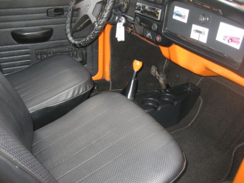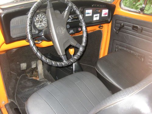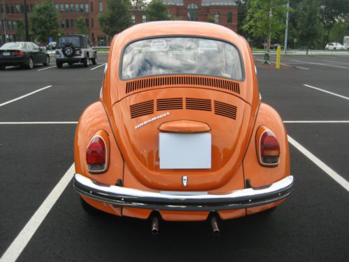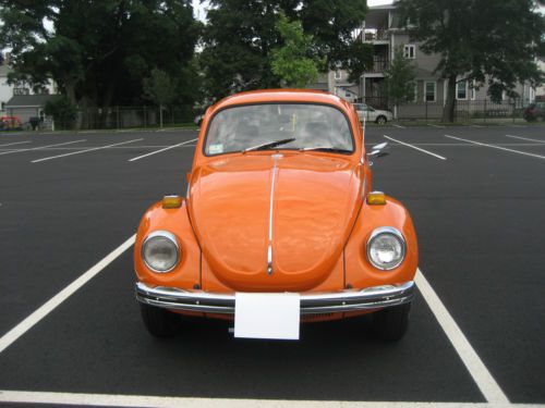 This beautiful smoke free car started out in New Mexico and moved, rust free, to Massachusetts in 2000. Once here it was fully and beautifully restored by an expert and experienced VW repair shop owner who sold it to me and maintained it for 12 years. Recently it has been cared for by a local VW dealership. I bought it in June, 2000 and had it appraised for insurance purposes. It was appraised for $8,000.00. The appraiser's report is available to be read. When I bought the car the odometer read 46,870. It is now 54,511. So that is 7,641 miles on the new engine in 14 years. The car is garaged from November - April. In 2006 while it was parked in front of my house, the car was hit by someone running a stop sign. Though not badly damaged, driver side front and rear fenders, both bumpers, head and tail lights were replaced at that time. The battery was replaced in March of this year. Extras included are a car cover, leather steering wheel cover, wooden shift knob, windshield sunscreen, and installed console with cupholders. |