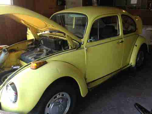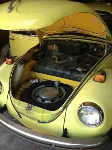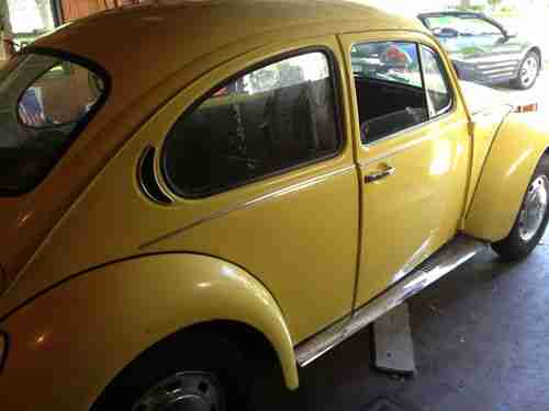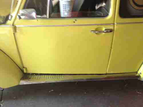 This is a 1972 VW Super Beetle. It is yellow in color and the body is in great shape. Only minimal body surface rust, no rust through the body. There is one small piece of chrome trim missing.
