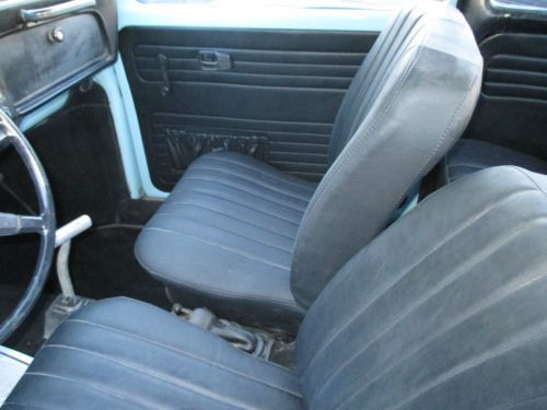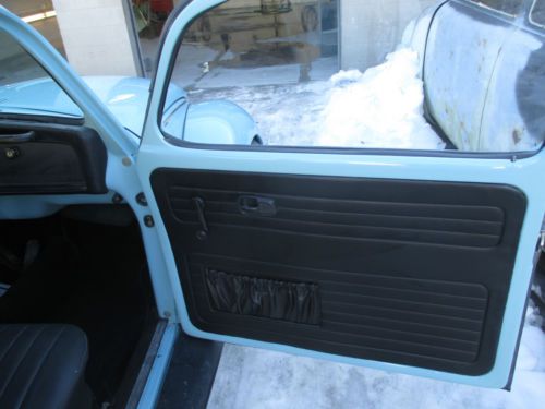 This is a 1972 VW Super Beetle. I bought this car from a friend about 4 or 5 years ago and worked on it on and off until now. When he had it, it was parked in his garage 20 plus years. When we had it painted it still had the original paint on it. The body on the car had very little rust. The under side of the car was in excellent condition. The car was fully disassembled to paint. And there are new front & rear fenders, only because there were some dents. It has a new windshield and as you can see one piece door glass . All 4 glass moldings were replaced as well, along with 99% of the chrome. On the outside I did away with the big turn signals on the fenders and exchanged them with aftermarket lights for a cleaner look. There are no bumpers. I liked it better without. The interior was completely redone. The front was changed to coilovers, which you can adjust the height easily. The brakes were redone and also has new wheels and tires. This car may not be perfect, but standing beside it or 10 feet away it is without a doubt a very good looking car. I'm sure there are a lot of things I forgot to put, and the only thing I did not detail was the motor. But, a good cleaning is really all it could use. This car runs and drives great. It may need the carburetor rebuilt or I may just need driven. As I said, we just finished it and haven't driven it much. Now that its done, its time to move on to another project. This may not have been a frame off restoration, but it was striped down to the shell, painted and put back together with just about everything new under the hood. The door jams are still the original paint. I didn't paint them because they still looked good and are original.
