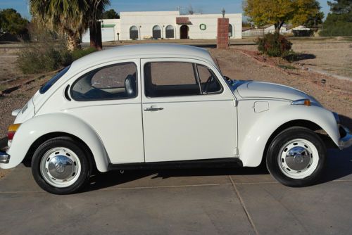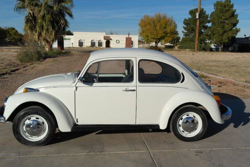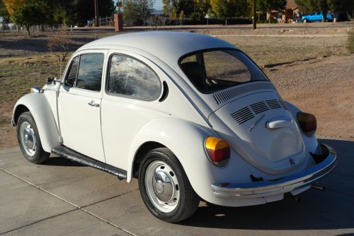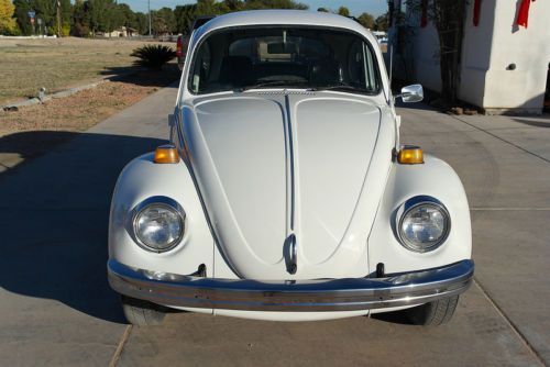 1973 VW Beetle. Second owner and its listed on the title. Odometer reads 65,491 miles. But it it might be 165.491 -Car runs and drive with no problems, Shifts great in every gear. -All turn signals work and headlight, parking lights and tail light work. -Gas, odometer and speedometer work -Paint is White base coat and clear coat. Painted this year -No rust in or out of the car. -Interior is in good shape. Front and rear seats were redone last year, as well as new door panels. Needs head liner. To my knowledge this car runs and drives great and being sold as is with no warranty or returns. Buyer is responsible for arranging shipping, I will help assist. Payment: 500 Deposit is required in 24hrs and is non refundable. The rest in due in 72 hours after auction ends and bank deposit, wiring, transfer only or cash. Car is being sold locally and I have the right to end auction early. Car is also located in Arizona Near Phoenix |