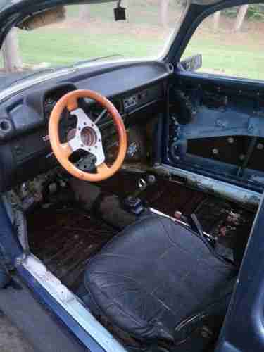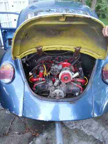 This car is a project car. It has shaved door handles, frenched in tail lights and shaved turn signals.Has high back front seats, no back seat. Lowered in front, chrome bug wheels and the motor is out of a fast back. Head lights and turning signals work. Has a rust spot on back quarter panel on drivers side. Doors are popper doors (need to get poppers for them) Motor will turn over but won't crank, changed wires, points and plugs. Must have gotten timing off. Going to have that looked at. Tires are old so will need to be loaded on a roll back or possible towed. Should have title in 2 weeks.