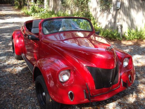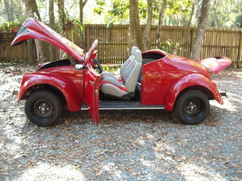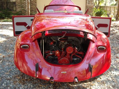Custom; one of a kind. Mack truck hood ornament(bull dog). There is no back seat or top. All carpeted with nice two fold middle split cover over battery & other floor well. Starts & runs good. No oil smoke. Clutch & shifing good. Two rear speakers. The magnesium rims are painted. Compare with dune buggys on Ebay. My price is real close to upper end dunes. And, do you really want an "A-typical" dune clone? Ya seen one dune, seen them all. A roll bar in my VW can adapt a bimini or similar sunshade targa, & work for surfboard, beach equip, etc. cool carry. ALL NEW items: floor pan, wiring, brake parts, *front disc brakes, axle dust boots & bearings, shocks(rear have adjustable springs), front end parts, stainless trim pieces on running boards, $800 in Kumho tires, chrome lug nuts with locking one on each wheel (key to locking lugs is stored in engine compartment which locks), and so on. The battery is not very old. Also includes a 100% waterproof elastic cornered, & vented storage cover (for event outside parking, etc.; it does keep car dry). NEEDS SEAT BELTS. CLEAR TITLE/VEHICLE ID#. THE LAST PICTURE IS WITH HUBCAP ALTERNATIVE . LOCKING STEERING WHEEL & ENGINE HATCH. ELECTRICAL CUT-OFF SWITCH TO ALL CAR FEEDS BEHIND PASSENGER SEAT.
