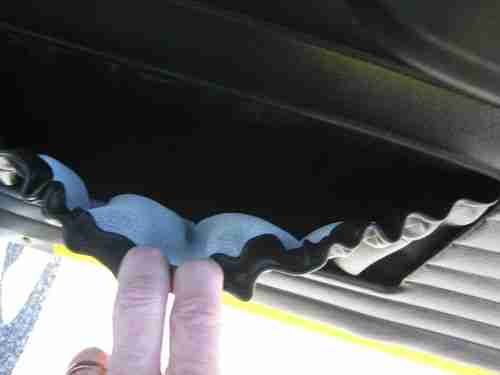 (3) During the restoration of the interior the back seat suffered a split in the seat back as the picture shows; (4) at speed (55mph) the car drifts; (5) during braking the brakes feel spongy; (6) rubber gasket at passenger door has a small crimp in it not a cut and will need gluing.