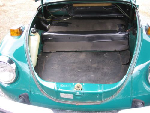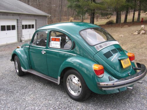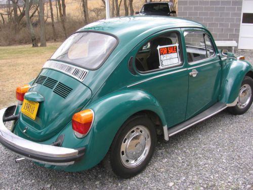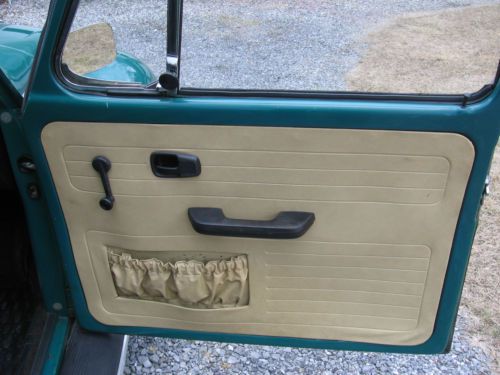 THIS IS AN OLDER REPAINT. IT STILL SHINES. IT'S GREEN AS WAS THE ORIGINAL COLOR. IT HAS THE NORMAL NICKS AND DINGS FROM USE. IT HAS THE TYPICAL SMALL HOLE UNDER THE BATTERY. THE REST OF THE FLOOR PANS & HEATER CHANNELS ARE SOLID. THE INTERIOR IS VERY PRESENTABLE. THE ORIGINAL SEATS, CARPET, AND HEADLINER ARE IN GOOD CONDITION. IT HAS A NEW DASH COVER. ALL THE ORIGINAL GLASS IS CLEAR. THE LEFT DOOR PANEL HAS A SMALL TEAR(SEE PICTURE). EVERYTHING WORKS, INCLUDING THE FACTORY AM RADIO, WITH THE EXCEPTION OF THE ODOMETER. IT IS SHOWING APPROX 46,000 MILES. WE LISTED THAT IN THE MILEAGE BLOCK ABOVE ALTHOUGH WE CAN'T CONFIRM THIS IS THE ACTUAL MILEAGE. WE BELIEVE THIS IS IN FACT A LOW MILEAGE CAR, AS WE SAW NO EVIDENCE THAT IT HAD EVER BEEN DISASSEMBLED. WE DID REMOVE THE ENGINE AND TRANSMISSION TO REPAIR TRANSMISSION VACUUM LEAKS AND ENGINE OIL LEAKS. ITS A 1600 DUAL PORT, ALL STOCK. WE REPLACED THE BELT, ALL HOSES, VALVE COVER GASKETS, PUSH ROD TUBES, ETC THE TRANSMISSION IS AUTOMATIC, WHICH SHIFTS AND SOUNDS SMOOTH WITH NO APPARENT MECHANICAL ISSUES.. THE BRAKES ARE FINE AND APPEAR TO BE LIKE NEW. THE FRONT END IS TIGHT. ALL ELECTRICS WORK FINE. IT HAS NEW FRONT PARK LIGHT LENSES. THE TIRES STILL HAVE A LOT OF RUNNING IN THEM. THIS IS A NICE LOOKING, GOOD DRIVING, GOOD RUNNING CAR, READY FOR A NEW HOME. THERE IS NO WARRANTY, EXPRESSED OR IMPLIED. THIS CAR IS FOR SALE LOCALLY, SO WE RESERVE THE RIGHT TO END THIS AUCTION EARLY. LOCAL PICKUP ON THIS, BUT DELIVERY IS AN OPTION. YOU'LL NEED TO CONTACT US TO MAKE ARRANGEMENTS AND COST. A $500 NON-REFUNDABLE DEPOSIT IS REQUIRED WITHIN 48 HOURS OF AUCTIONS' END. THE BALANCE DUE AT TIME OF PICKUP. WE HAVE THE CLEAR VIRGINIA TITLE. YOU'RE WELCOME TO COME TAKE A LOOK BEFORE YOU BID. WE'RE EASY TO FIND, JUST OFF I-81 IN SOUTHWESTERN VA. GOOD LUCK BIDDING! |