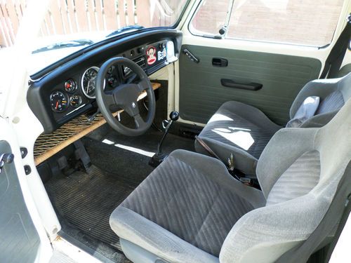 VDO Gauges: Tach, Volt meter, Clock, Oil Pressure, Oil Temp, Honda front seats, JVC AM/FM/CD with 100w amp under back seat, Nice speakers, New Glove Box, Floor pan has been bed liner coated, EMPI D Ring Shifter, Bambo tray, ect.
