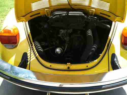 Estate of late Norman, OK VW collector offers this 1974 Super Beetle Deluxe Sedan. This car is in superb condition in all respects - the engine is strong, brakes are firm, clutch take-up is smooth, there is no play in the steering, the tires are near new, and the yellow paint is nearly flawless, as arethe chrome, bumpers, and exhaust tips. The black leatherette interior evidences no tears or cuts, the headliner is good (not perfect), and there is a narrow crack in the dashtop just above and to the right of the speedometer binnacle, about an inch long. The car runs, shows, and drives well, and is very reliable. NOTE: This VW came from the factory with an automatic transmission; the late collector had it converted to a VW 4-speed manual, and it shifts as a VW should. Further, the car was delivered with factory air conditioning, and it remains, save the compressor. If you have interest in a 1974 Super Beetle, this Volkswagen is worth your attention. And, it must be sold to close the estate.