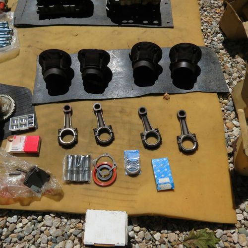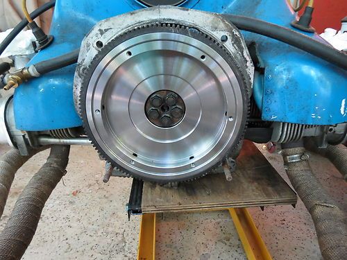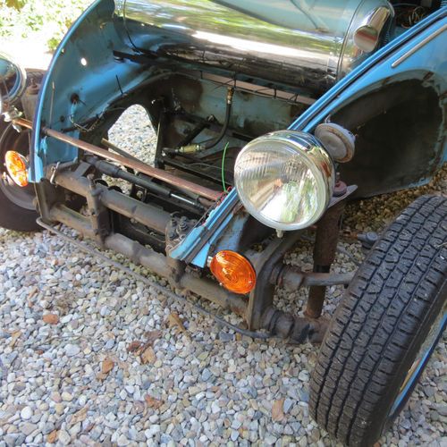 front extender and reinforcement installed steering shaft done,stainlless fuel tank front disc brakes five lug ford front and back new tires and rims new bucket seats steering wheels and tires hi torque starter lights all around 2 liter type 4 motor with new flat top pistons dual empi EPC'S unilite distributor large oil cooller and fan converted to upright new alternator aluminun valve covers hi torque starter electric fuel pump among other miscelaneous stuff.A brand new 200 mm flywheel by kennedy eng (needed to adapt type 4 into bug trans). is included and clutch as well. Motor was bolted on this weekend and something that i didnt mention before is a foward exhaust made up of of 914 headers is included . In the interior you will find new poly seats and covers with sliders on both sides ,door panels grant steering wheel .
