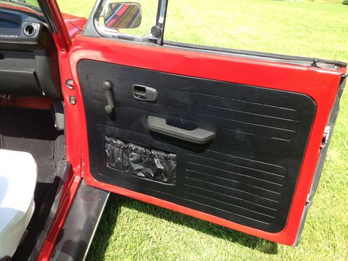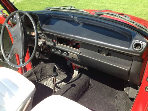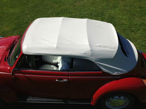 Up for sale here is a 1977 Volkswagen Super Beetle Convertible. This is the rare Karmann model with the Fuel Injected motor in it. The previous owner of this car purchased it in 2005 in California and drove it back to Canada. It has never been winter driven, never seen snow. He was told the motor was re-built, but there are no receipts to prove this. It runs good, no smoke, no knocks, starts good and seems to have good power. The car was partially restored by the previous owner 5 or 6 years ago, but then lost interest and never finished it. New floor pans were put in it from front to back and new running boards were also put on it. A new PPG windshield with rubber gasket was put in it. The car has had allot of new rubber weather stripping. The seats were re-upholstered at some point in time. New carpet has been put in it. A brand new top was purchased, it was partially installed but not professionally installed. The top needs to be finished being installed, it is not usable as is. The rear window is not put in it, but I have it. I never left the car outside or put the top up so it was no big deal to me. The top frame was sand blasted and painted, a new oak bow was bought and installed too. Overall I would say this is a really nice rust free California car that just needs to TLC. It is in driver condition, nothing on it is perfect, but you can drive it and enjoy it right now. I just put a new brake system on it, including the master cylinder and all 4 wheel cylinders. New tie rod end. The tires are in good condition with lots of tread, they look nearly new. Good Driver at a Great Price !