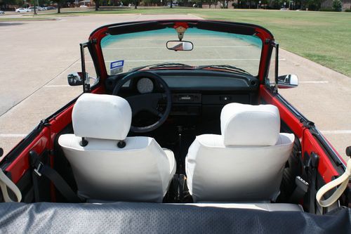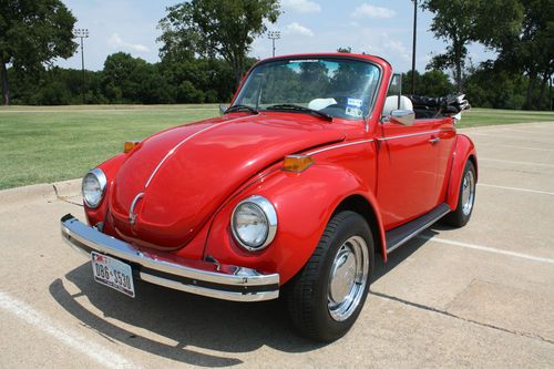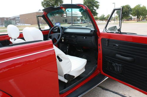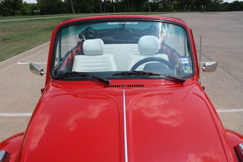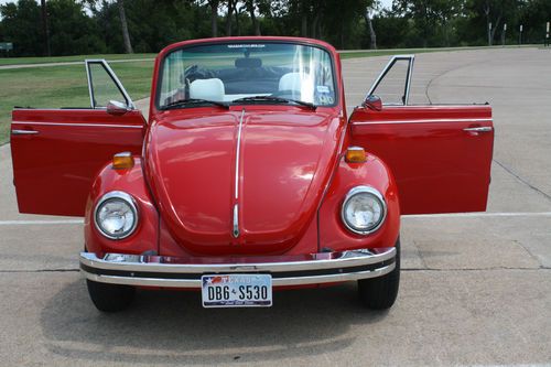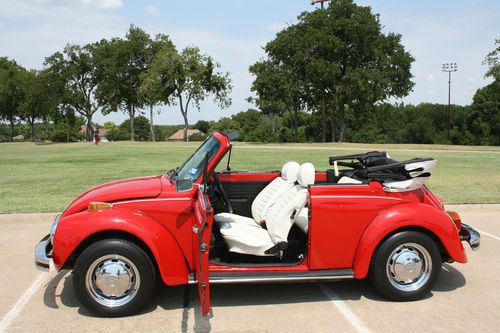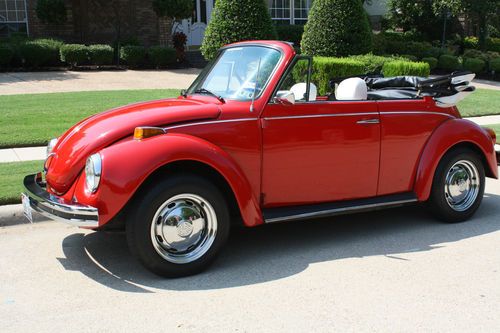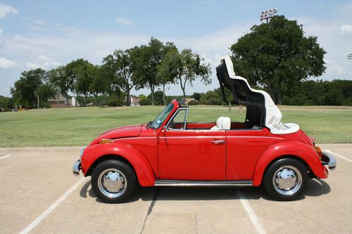 Your are bidding on an Absolutely Gorgeous 1978 VW Convertible. This Red and White Convertible is one of the finest in the Southwest area. This is a really nice example of a Classic Convertible that can be driven as a daily mode of Transportation. Me and my Wife have had a great time with this VW Convertible, its really Peppy and Quick thru any traffic. You can put the top down and cruise at 75mph easily. This convertible has had a complete overhauled engine at 4,000 miles ago, it drives Fantastic, New fuel system, New Brakes, New Rubber all around trim, New Blinker switches, New Windshield, New Carpet, New Seat Belts, and New Radio sound system with I-Pod Connector. The Transmission shift perfectly as it should, also we have put new Tires with new VW Wheels and Hub Caps on the car. This car is such a pleasure to drive, that your evenings turn out to be more than a few hours long. Good luck to everyone bidding. If you live in the Dallas, Area you are welcome to come by and see the car any time, just send me an email so we can set up a time. Car is at my Home here in Plano, Texas.