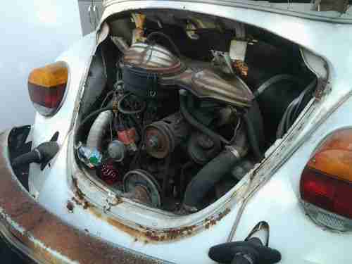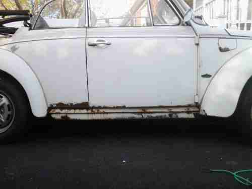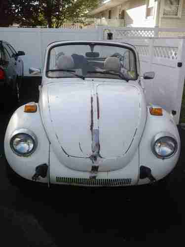 Up for sale is a 1978 triple white Volkswagen super beetle convertible, project car. Car has 76k on the odometer. Engine was converted to carb. The car runs but will need a carb rebuild. It has brand new floors. The underside of the car is very solid. Around the convertible roof well there is a rust spot that needs to be taken care of. The rust spot on the lower 1/4 is solid, just surface rust, no hole by any means. The doors shut like new, in great shape. The top frame is there, no top. This bug was sitting in a garage for 14 years. Basically the car will need interior, top, and some body work but is a very good foundation for a nice project car. I have way too many projects so this one has to go.. Other extra parts included such as engine cover, glove box, correct wheels, etc. Clean NJ title..