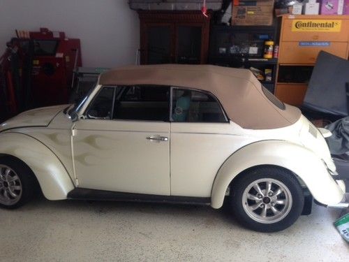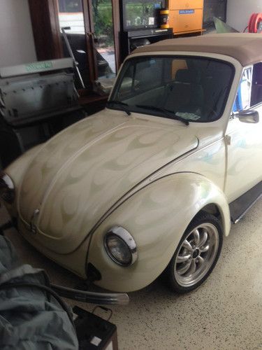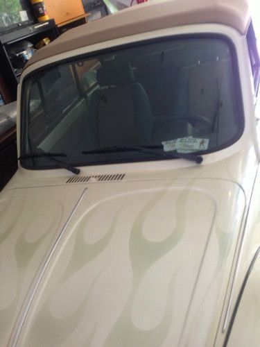 Here is my 1979 VW Super Beetle Convertible. It is a new resto-custom with no expense spared. Very hot completely rebuild engine, new trans, disc brake conversion, lowering springs and struts, empi 8-spoke wheels, Sew Fine interior (complete with all carpets, brand new seats instead of covers, new door panels, visors, hand grabs, seat belts-everything!), Stay-Fast fabric top, PPG 3 stage pearl clearcoat paint with ghost flames. Also has numerous body mods including a filled radio antenna hole, modified rear exhaust pan, filled front turn signals, rear 37 Ford teardrop tail lights and custom bumpers. This was a complete tear-down and rebuild of a very solid Las Vegas car. It had very minimal rust to begin with, everything welded and primed and then rust/sound proofed before paint. All professionally done, everything highest quality. I also have some parts that will go with the car, not sure what all is there, but if it is VW it goes! This car needs the following: door panels and window crank handles installed (included), radio installed (included), front turnsignals mounted and installed (motor cycle type very small ones are what I was planning on, they are included also or you an do your own thing), and a front end alignment (all front suspension parts are new and my shop's alignment rack was out of service when the car was there). This car is now and has always been garaged. It is currently in N. Alabama. I will assist in shipment or it can be driven, all costs and risks are the responsibility of the buyer. Payment is to be a cashier's check or wire transfer within 7 days of auction close. NO PAYPAL. as in none, never again. Don't even ask. If you must use paypal, please do not bid. If you have any other questions or need anything, please email. Thanks and good luck!!!