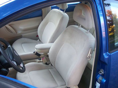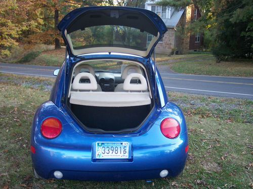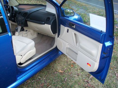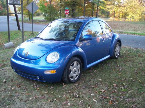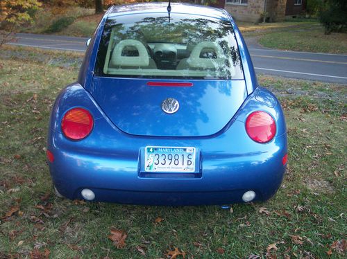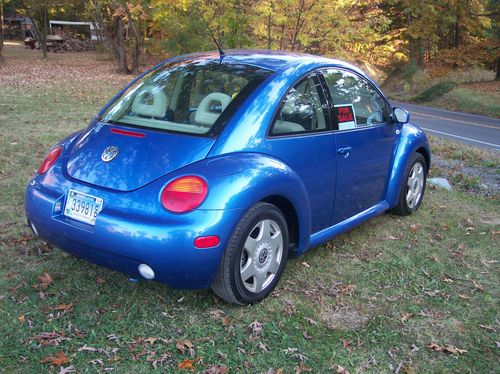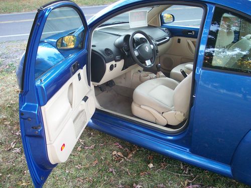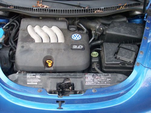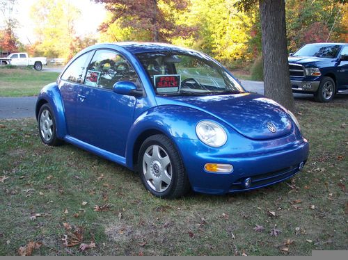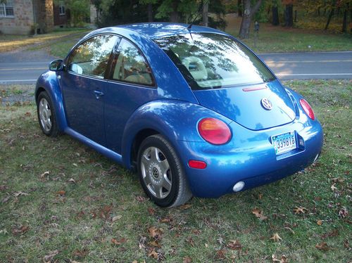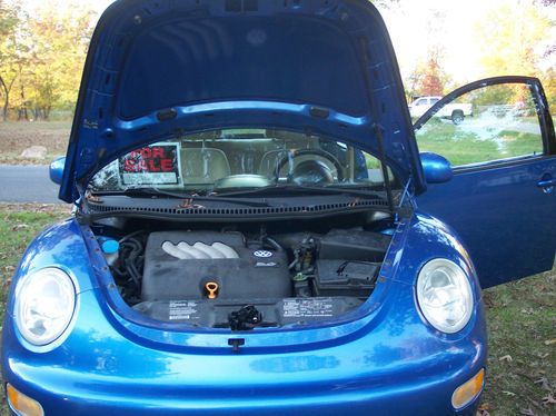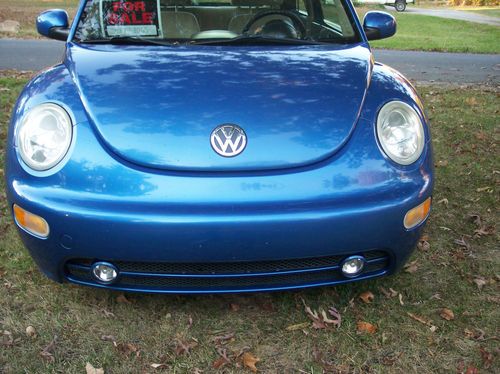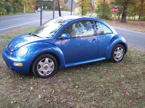 For bid is my 2001 Beetle. It is a beautiful bright blue with a cream interior. It is in very nice condition, with only a few small blemishes to the lower passenger side where it rubbed the curb, as it sets very low. Paint is very shiny and bright. I bought this car about 4 years ago as an extra driver, but have not driven it enough to justify keeping it. It runs fantastic and gets about 24 to 26 mpg. The way it is geared this 2.0 liter 5 speed will go over most hills without shifting. Interior in in nice condition, with lots of options. Power windows, power locks, keyless entry, multi disc cd player in trunk with Monsoon am fm cd player in dash. Heated seats and power sliding pop up sunroof along with cruise control, clock, and outside temp. Front tires are winter treads with about 500 or less miles. Rear tires have about 1/4 tread. New battery this spring. Now for the small problems. The check engine light is on even though it has been covered with something. The diagnosis is oxygen sensor. When I bought the car the light was on, and I replaced the lower sensor. It came back on so I took it to VW and they replaced the cat conv, which was on recall. The light came back on, so this time I replaced the upper sensor. It came back on. I talked to a couple of mechanics, and they said with the ethanol in the gas I might as well forget it, so I did !! I unplugged the seatbelt bell wire. and that caused the air bag light to come on. The brakes act up and make an odd noise off and on, but the brakes are good. Now with that said, this is a nice little car. I would not be afraid to hop in and take it anywhere. The NADA retail on this car is around $5400. Here is your chance to own a great bug at a great price. Ask any questions and I will be glad to answer. I will also be glad to meet you part way if you are driving a distance, contact me and we can make arrangements. Thanks, and good luck.