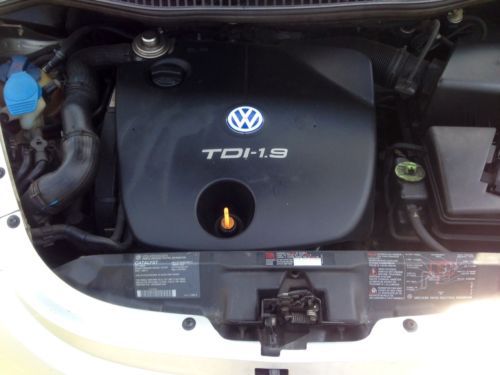 FOR AUCTION WE HAVE A 2001 VOLKWAGEN BEETLE WITH THE 1.9 LITER TURBO DIESEL ENGINE AND AUTOMATIC TRANSMISSION.THIS SUPER CLEAN LITTLE FUEL SIPPER RUNS AND DRIVES BEAUTIFULLY.THE MOTOR AND TRANSMISSION ARE AS STRONG AS NEW.THE TIRES ARE IN GREAT CONDITION WITH PLENTY OF TREAD ON THEM.THE PAINT SHINES GOOD WIH NORMAL WEAR FOR A CAR OF THIS AGE.THE LEATHER INTERIOR SHOWS LITTLE WEAR AND IS IN GREAT CONDITION FOR THE AGE.THE CARPETING AND REST OF THE INTERIOR IS CLEAN AND IN GREAT SHAPE AS WELL.THE ONLY KNOWN ISSUES ARE THE A/C DOES NOT BLOW COLD BUT DOES BLOW(POSSIBLY NEEDING A CHARGE) AND INSTRUMENT CLUSTER GAUGES WORK INTERMITENTTLY.THIS CAR GETS NEAR 50MPG!!