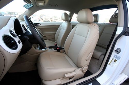 Feast your eyes on this stunning 1-owner local trade-in. This front wheel drive Beetle has low mileage and an eye grabbing design. It's in great condition and rides great! Under the hood you'll find a powerful, yet economical 2.5 Liter 5 cylinder engine, with automatic transmission! Inside is a tan color scheme with matching leather seating! Power windows, power locks, power mirrors, manual seat adjust, tilt/telescopic steering column, cruise control, heated seats to keep you warm and toasty during those cold Winter months, leather-wrapped steering wheel, fuel range calculator, 12-volt power outlet, AM/FM stereo with CD player, aux input jack, air conditioning, rear window defogger, 50/50 split rear seating, first aid kit, remote keyless entry, power trunk release, dual glove box storage, all-weather floor mats . This vehicle is still covered by the VW factory warranty.