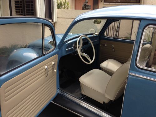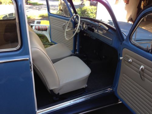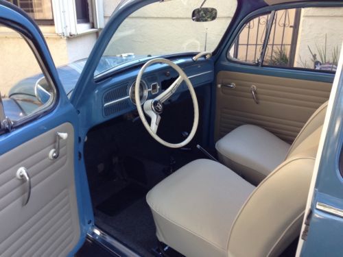 1966 beetle. Restored. New dove blue paint. All new interior with head liner. New running boards and bumpers. New stainless trim. All new window rubbers. Rear pop outs. 1600 cc. Some chrome accents on engine. No rust at all. California car. Title in hand. $9800.