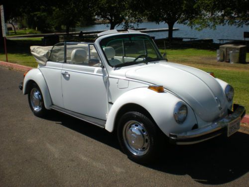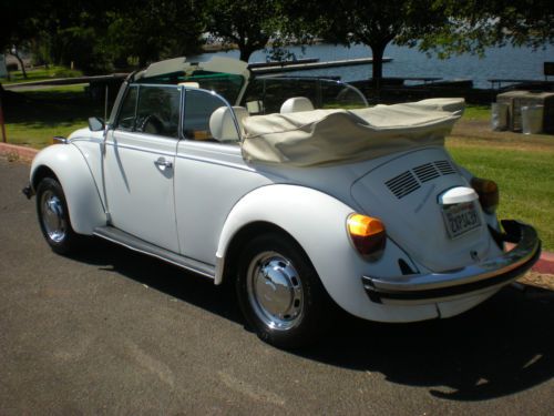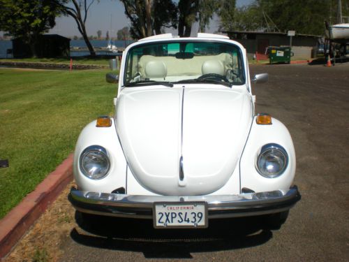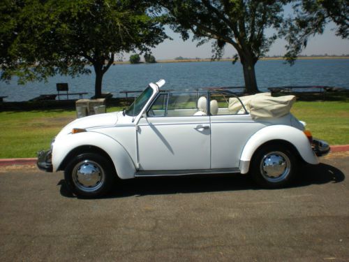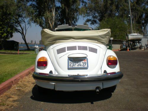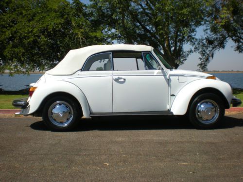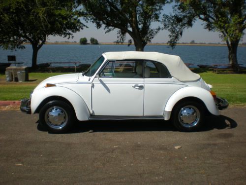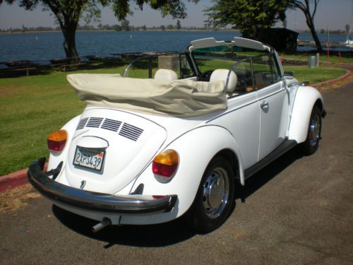 Up for auction is this beautiful 1979 Volkswagen Beetle Convertible. As I'm sure you know, 1979 was the very last year that Volkswagen produced the Beetle Convertible, and this car is one of the very last cars to ever be built as it has a build date of January 1980! That was the very last month of production, ending forever the Beetle Convertible. To me that would make it the most collectable Beetle ever. If you have ever owned or driven a Beetle you know what fun they are to drive! Just running errands is a blast! And a top-down ride this time of the year is pure pleasure. This car has always been a California car, garaged all of its life, the original interior is still in good condition. The top is about five years old; it is in good condition with a couple of small spots that are a little worn through one layer; you can see these in the picture. It goes up and down nicely and seals up great. The original top boot is also included. The body is very straight and the paint still very shiny! I do believe the car has been painted once since it was new. No accidents, the front and rear aprons are as new. All body pieces, the fenders, doors, hood and engine lid are the factory German pieces that the car came with when new. Other than the chrome wheels there are no aftermarket pieces on this car, including the bumpers. Not a 100-point show car, but a very nice car that you will be proud to own. Drive it on the weekend to your favorite car show or really enjoy life and drive it every day! I was told the mileage of 78k is original but I have no documents to prove it, however I believe it to be true since the car is solid and tight like a 78k mile car. A lot of people restore these cars and some do a good job. But here is a car that has never needed restoring! It has always been kept in good condition. Motor runs quiet and strong and was rebuilt about 5000 miles ago. Tires are about 80%. NO RESERVE AUCTION!! means someone will get this great little car. Available for inspection any time during the auction by appointment. Please remember you are bidding to buy, not just come look. All inspections must be completed before the end of the auction. Full payment is due in three days and I don't take PayPal for payment on cars. E-Mail or call me at 831-383-2499 with questions. Clear California title. I'll ship anywhere in the world at buyer's expense. I can help with shipping, I work with a very reliable company and can have it shipped to your door in the U.S. I also ship to Europe out of Oakland Ca. GOOD LUCK and HAPPY BIDDING!!!!