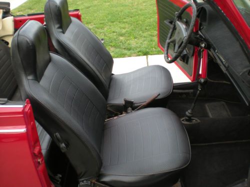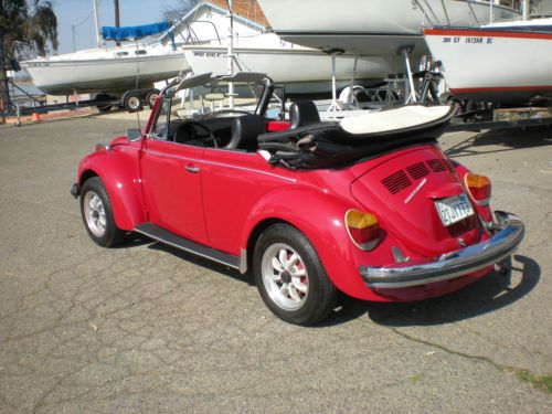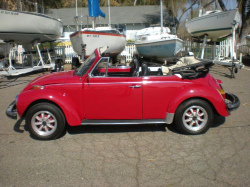 Convertible! If you have ever owned or driven one of these great little cars, you know what fun they are! Just running errands is a blast! And a top-down ride on a beautiful day is pure pleasure. It has always been a weekend driver, never used every day. New red paint about three years ago, it's very straight and shiny. NO RUST EVER!! The interior is in great condition; the seats have lots of padding. The top is in excellent condition with no rips or tears anywhere. Almost new tires on Minilite wheels. The rebuilt motor runs quiet and strong with no oil leaks. A very nice car that you will be delighted to own! Take it to your local "Bug" show and be proud. Or really enjoy life and drive it every day! What else can you drive with the history and reliability of a Volkswagen?! I have owned and driven these car for over 40 years now and I can tell you that this is a very nice one -- a true "keeper". A lot of people restore these cars and some do a good job. But here is a car that doesn't need restoring! It has always been kept in good condition. Beetle Convertibles have been going up in value since the "New Beetle" Convertible came out and are sure to steadily increase in value. Whether you buy this car for an investment or just for fun you can't go wrong. NO RESERVE AUCTION!! This means someone will get this great little car. Available for inspection any time during the auction by appointment. Please remember you are bidding to buy, not to just come look. All inspections must be made before the end of the auction. Full payment is due three days after the end of the auction and I don't take PayPal for payment on cars. E-Mail, or text or call me at 831-383-2499 with questions or offers. Clear California title, current tags. I'll ship anywhere in the world at buyer's expense. I can arrange domestic or European shipping, and have the car delivered to your door most anywhere in the U.S. Good luck and HAPPY BIDDING! |