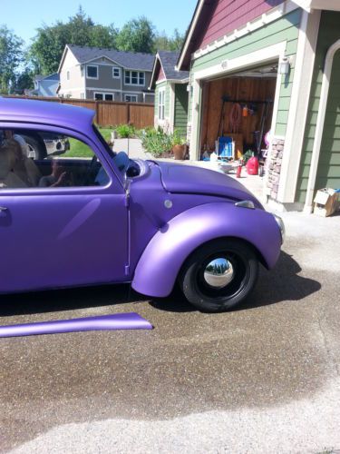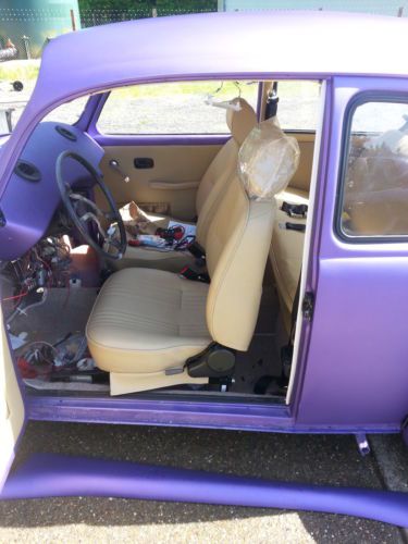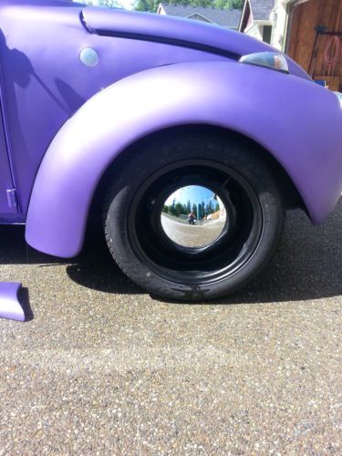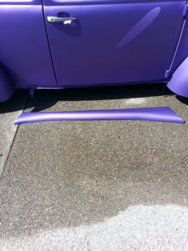 BODY- car has 2 inch wider fiberglass front fenders and 3 inch wider fiberglass rear fenders. I added the older style headlights and 39 Ford led tail lights. I also added the blinkers on top of the fenders and the parking lights are inside with the headlights. Matching fiberglass running boards are smooth amd really add to the custom look. I removed the front and rear bumpers and added a smooth steel front and rear apron. The engine lid has a license plate recess welded in. I also welded all of the trim holes on the sides of the car for a smoother look, leaving the hood trim on the car. I also welded closed the stock mirror that stuck out of the door and added mirrors to the door hinges like older models. The stock fuel door has been removed and a trick motorcycle filler was added. The cap is aluminum, it pops up and allows you to turn it to fill up.