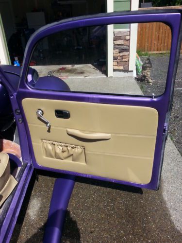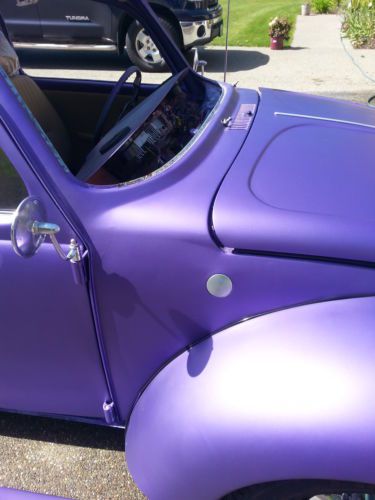 The car was painted Plum Crazy Purple with a satin clear. The car just glows in the sun. It is a beautiful shade to go on this car. Since the paint is satin, all of the chrome didn't look right being shiny. So the chrome trim, door handles, mirrors, and handles were bought new and then made to look brushed.