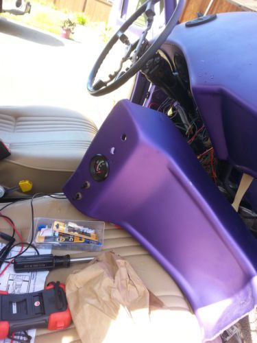 INTERIOR- The original dash was cracked and old and was replaced with a fiberglass dash and center consle from Glass Action. A new speedo, tach, fuel, oil press, oil temp, cylinder head temp, and volt were also added. Car has brand new oatmeal colored carpet in the interior and trunk and new tan headliner. I also added new front seats from Procar. The seats are the Pro 90 front seats in tan. I also added the rear seat cover, door panels, and arm rests. These seats look amazing in the car and are really comfortable compared to the original worn out seats. I also got a new steering wheel which is almost an exact match in color to the seats. The interior is finished with new seat belts, cd player, blinker arm and switch, light switch, and hazard switch. I also added a new engine wiring harness and replaced some of the original wiring as it needed it.