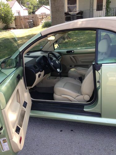 I am selling a 2009 VW Convertible New Beetle in green with a beige top. This car is in excellent mechanical condition, and only has 23,000 miles on it (mostly highway miles).