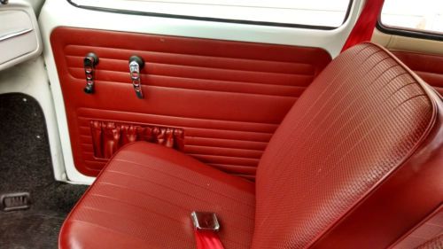 The car has a Professional Paint job completed just 4 years ago. The 1600 Engine was rebuilt by a local VW shop that has been in business for more than 30 years. The car was completely disassembled and sandblasted. Solid original pan that matches the clear Idaho title. Solid heater channels. The typical small areas of rust near the front and rear wheel openings were removed and repaired with new metal by the professional paint shop. New window gaskets, window felts and door gaskets were replaced with new items. Installed over $3,500 of new parts from Wolfsburg West in a four year build project with my son. Here is what we did together. Installed a New Interior with new seat pads and electric heated seats! New headliner professionally installed. New Door panels, rubber mats and Fatman Soundproofing, New fuel lines, New gas tank,New brake pads front and rear. New metal and rubber brake lines. New German master cylinder, New Bigfoot brake & clutch pedals, New cables, New clutch, 12 volt flywheel, New axle boots, tie rod ends and ball joints. New Retrosound Digital Stereo with ipod input port. You can find the entire step by step build of this VW on our club web page. Zetaboards VESI or email me and I will send you the link. This Volkswagen drives great and with the new motor can cruise at highway speeds with ease. It also sounds amazing with the performance exhaust. I will answer any questions and send more photos by request. |