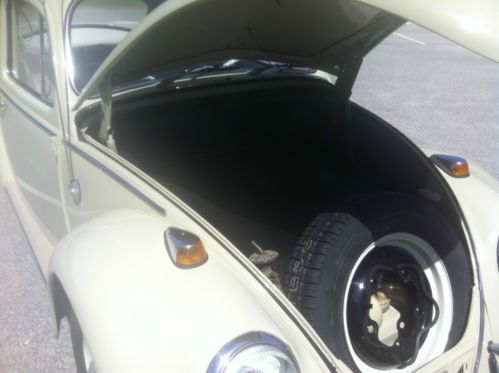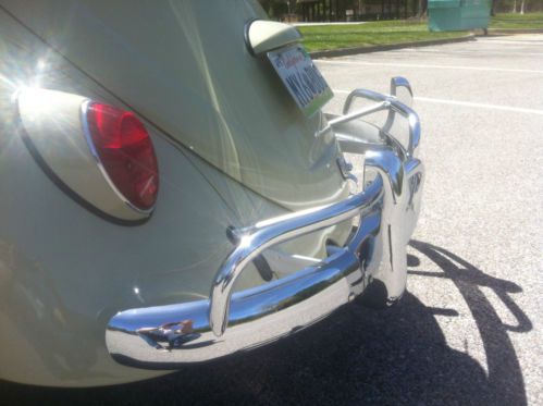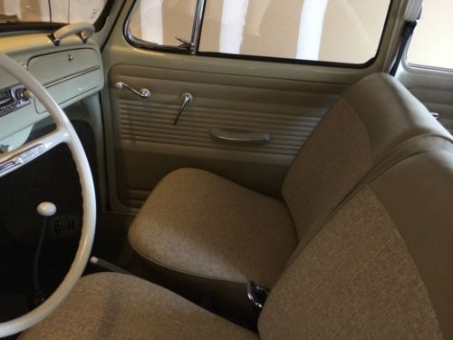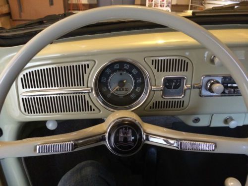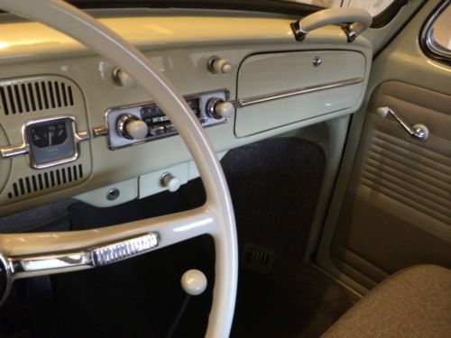 Restoration took almost 2 years as extensive research went into the selection of every material and part to achieve a high level of authenticity and quality. It truly looks like it may have just come off a showroom floor from 1965! Each replacement part was hand-picked to ensure quality and originality. This car could easily make a very high-quality addition to any collection, or it's ready to take out on weekends or as often as you want. The Beetle is in perfect working order. Starts up every time and shifts like silk. The color combination is also very unique - the ivory running boards, knobs, steering wheel, etc. give the interior an incredibly airy and open feel. Everyone comments on how bright the interior is when they see it. Restoration details: