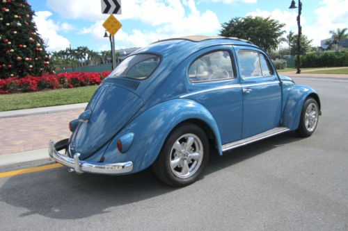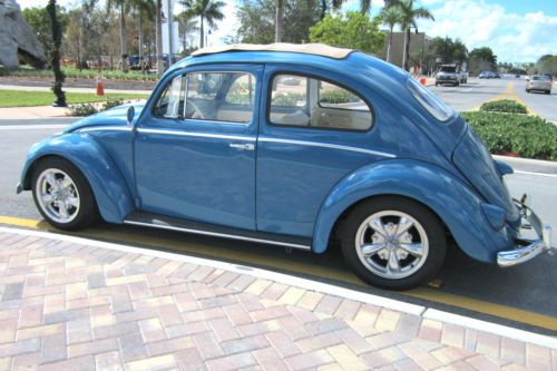 * Complete ground up restoration! * Original 1200 CC 4 cylinder engine * Rare canvas sunroof car * Alloy wheels This is it! This is an absolutely gorgeous 1959 VW Beetle with the rare canvas sunroof option! This beautiful Pastel Blue Beetle has been treated to a complete ground up restoration and is ready to be shown or driven anywhere! The exterior of this Beetle is in beautiful condition with gorgeous paint and no nicks or scratches. The interior is all new with a perfect dash, door panels, headliner and carpeting. This VW runs and drive perfect! The 1200cc 4 cylinder engine was completely rebuilt and all the mechanical and electrical components are in fine working order. Chrome, trim, weatherstripping, tires, etc are all like new! Don't miss out on owning this rare Bug at a great price! Call me at 305-992-3575 if you have any questions. Thanks! |