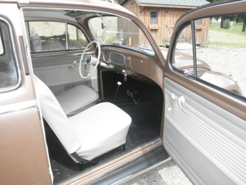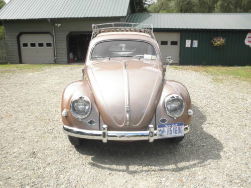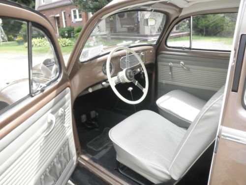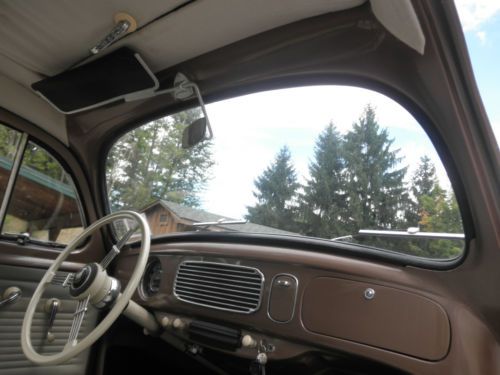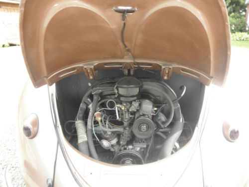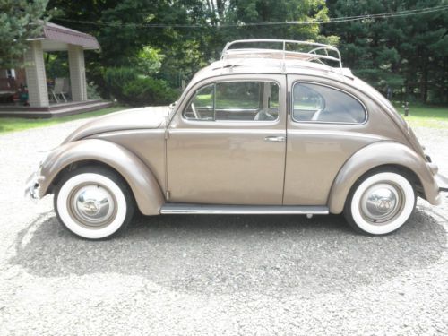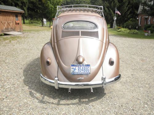 This is one of the nicest VW bugs I have seen, I am selling it for a friend. It has had a pan up restoration including the 36 hp engine aprox. 500 miles on it since completed. There are a few minor chips and some pitting on the hubcaps but should still win awards at any car show. It is on the road and inspected very driveable. The seats are beige vinyl, includes everything in pictures including the roof carrier. It has the pop out turn signals and a banjo steering wheel. New headliner, top, seats,black carpet, ww tires.If you want a rare oval window bug very reasonable this is it ,I feel our reserve is low for such a rare bug but the motor is not numbers matching , 8741264 is the number which I think is era correct for the 1954. The color is a VW color of paint but it reminds me of the dodge color champagne.