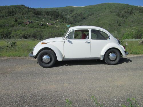 1972 Volkswagen Beetle. This is an original low mileage, good running and driving, Volkswagen Beetle. The VW is registered to me and I have an original Utah Title in my name. This VW spent most of its time is, dry (no salt on the roads), southern Utah. The original pan is solid, not dented, and is rust free. The engine was recently rebuilt, and runs excellent. The VW shifts smoothly and stops firmly. It has new tires and a new battery. The body is very solid and does not have any hidden repairs. All of the glass is good and the spare tire is in place. It is an original, 76,000 mile, Beetle. If you have any questions about my Beetle, please don't hesitate to give me a call. My home phone, which is still attach to our kitchen wall, has the following number (801) 745-0599. The VW is currently registered, insured, and has been safety inspected. These steps are necessary to register and drive a car in the State of Utah. The VW can be driven anywhere and comes with a repair manual and catalogs.