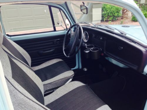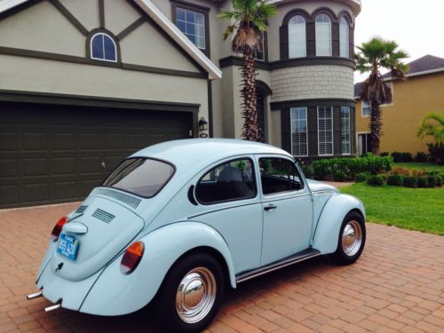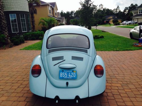 This is a beautiful restored 1972 VW Beetle. The whole interior is brand new from the floor pans to the headliner. The car is painted the original color of Marina Blau. 90% of the car has been replaced with all new parts. The engine has just 1,323 miles since being rebuilt. All the parts on the engine are new, except for the original Solex carburetor. The tires and wheels were also just put on to complete the car.