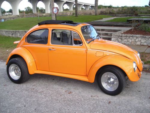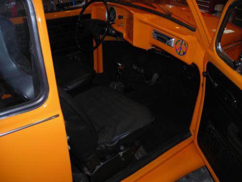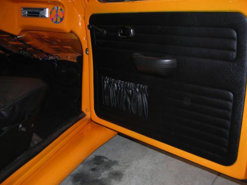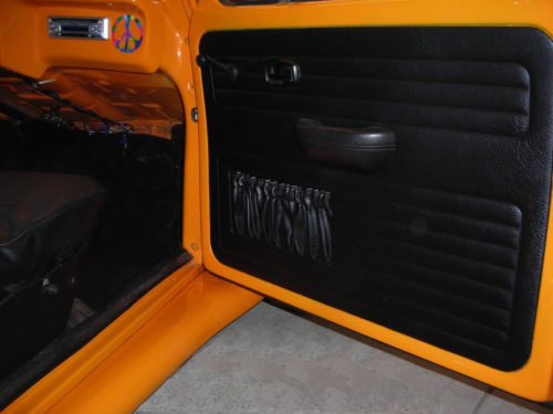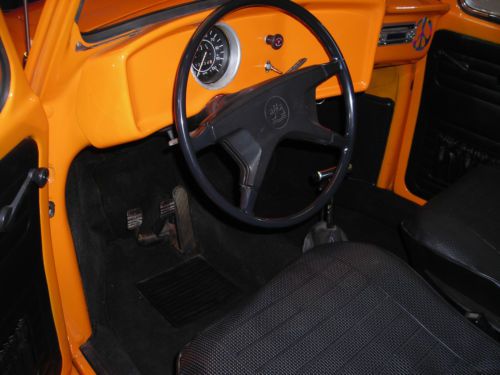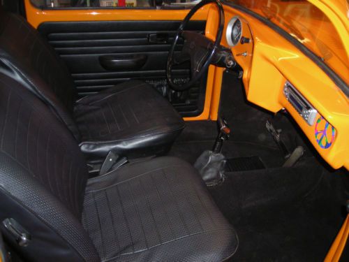 One of a kind. Newly restored. Almost everything new. True mileage unknown as custom dash was installed by the previous owner. New canvas sliding top sun roof Custom rear deck with speakers Custom fiberglass dash New black OEM carpet, new black headliner, new rubber gaskets on windows and doors, new door panels, new black OEM front and rear seat covers Cobra tires and custom rims in excellent condition, 10” rear wheels in excellent condition, rear disk brakes New 12V battery Sony CD player, 4 new speakers Beautiful OEM Amber paint - new OEM chrome Custom rear spoiler, French rear taillights, custom built-in turn signal lights, custom fiberglass front and rear fenders, custom fiberglass running boards 1600CC rebuilt motor with new manifold, new 2 barrel carburetor, and custom header exhaust 4 speed transmission, Scat 4 speed shifter, new clutch, throwout bearing Performance exhaust header system New gas tank and new electric fuel pump NOTE: This is a 40-year-old vehicle and is being sold AS IS. We have listed the vehicle for sale locally so this listing may end early. |
