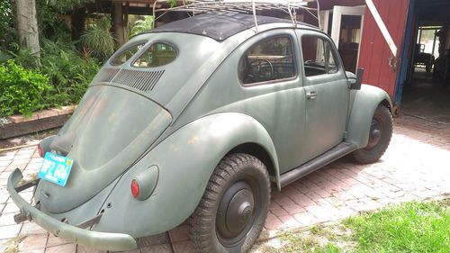 THIS IS A 1958 vw beetle with a metal split window , custom rolled back rag top, it is fully functional and does not leak. It has 12 v system, semaphores are new and work, all lights work as well. It has a single port 1500 cc engine, very strong and reliable. It has 12 v system, semaphores are new and work, all lights work as well. The rear end was built with a set of reduction gears. The brake system is all new, shoes, calipers, lines.;.gas thank also new. the wheels are original 16" VW split rims with a new set of WESSA military tires(the same ones that go in the Schwimmwagen and Kubel wagen) I imported a set from Europe. The hub caps have a metal cag wheel emblem. 1950"s roof rack. Interior is a couple years old, still like new. This car has some rust on the driver,s pillar door, floor pans, and small pin holes here and there. This is not a perfect car but it has lots of character and patina. Mechanically, very reliable. What you see is what you get. It shifts perfectly, no issues. Remember this is an antique car so it is sold as is. Please ask as many question as you like before bidding in this car. I will not accept any bid if you do not have Pay pal to placed A NONE REFUNDABLE DEPOSIT OF $1000. The reason Im doing it is to avoid those tire kickers that place a bid and do not have money or win the item and them try to offer you less $. Let,s be serious about doing business, Im sure you will like the same if you were in the selling here. Thank you,i and please do not hesitate to ask as many questions as you want to make you comfortable with the purchase of this unique vehicle.Again, this is a 58, titled in Fl, split rear metal window added, storng driver, sold as is , pay pal only