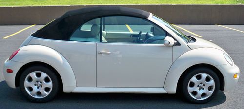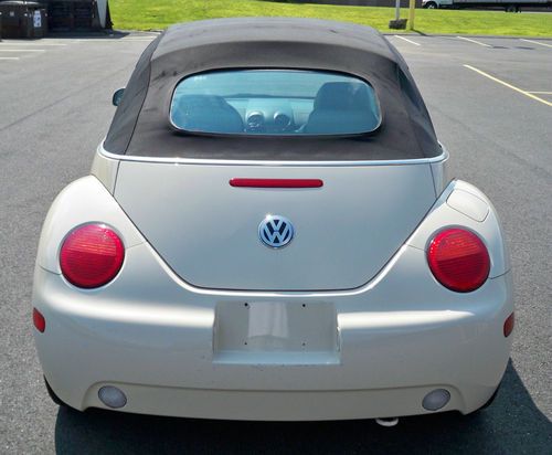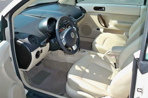 UP FOR BID IS A 2003 VOLKSWAGEN BEETLE GLS CONVERTIBLE IN NICE CONDITION AS SEEN IN THE PHOTOS. THIS VW HAS AN EXCELLENT RUNNING 2.0L 4 CYLINDER ENGINE AND A SMOOTH SHIFTING 6 SPEED AUTOMATIC TRANSMISSION. OPTIONS INCLUDE KEYLESS ENTRY, FACTORY ALARM, POWER WINDOWS, POWER LOCKS, POWER MIRRORS, POWER TOP, FOG LIGHTS, WOOD TRIM, ICE COLD AIR CONDITIONING AND ALLOY RIMS. THE CARS PAINT RETAINS ALL ITS GLOSSY SHINE AND THE INTERIOR IS IN REALLY NICE SHAPE ALSO WITH JUST A LITTLE WEAR ON THE DRIVERS SEAT. CONVERTIBLE TOP IS IN GOOD SHAPE AND WORKS FINE. THE CAR DOES HAVE SOME SCRATCHES ON THE REAR BUMPER A DENT ON THE PASSENGER SIDE ROCKER PANEL AND A COUPLE OF SMALL SCRATCHES AROUND THE CAR BUT THEY ARE VERY MINOR. THE CAR DOES NEED A REAR PASSENGER WINDOW REGULATOR THAT YOU CAN BUY ON AMAZON FOR $65.00. VERY TOP OF REAR WINDOW NEEDS TO BE REGLUED. AIRBAG LIGHT IS ON DUE TO PASSENGER SIDE SEATBELT SENSOR. THESE ARE ALL EASY FIXES. MILEAGE IS 134,000. THIS VEHICLE IS BEING SOLD AS IS. IF YOU HAVE ANY QUESTIONS OR WOULD LIKE TO SEE THE VEHICLE PLEASE SEND ME A MESSAGE WITH YOUR PHONE NUMBER AND I WILL GET BACK TO YOU. LOCAL PICK UP ONLY OR BUYER TO ARRANGE FOR TRANSPORT. THANKS FOR LOOKING.
