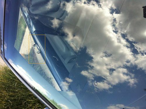 There are minor appearance defects. There is a mark in the front windshield on the passengers side. A fairly large scrape on the passengers side on the bottom.
