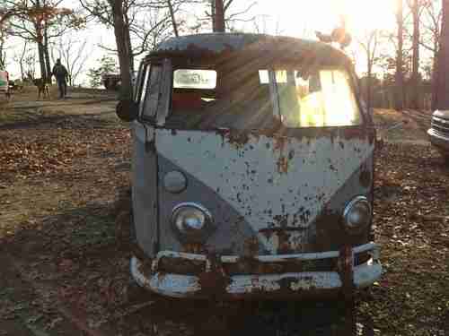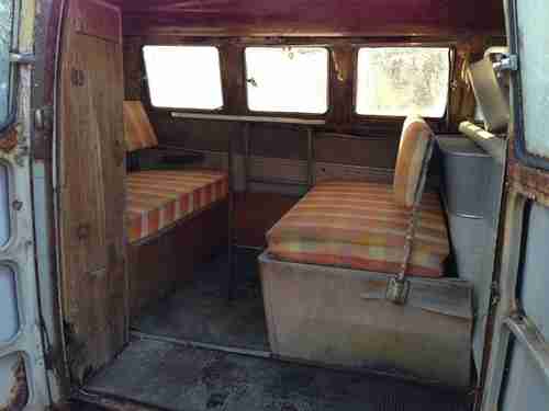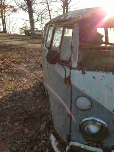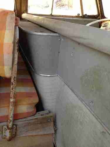 Ultra rare 1963 Volkswagen Bus. This is a Kombi model outfitted with an SO33 Westphalia camping kit. Could be the SO22 Mosaic kit as well. I bought this bus from the original owner and I have the original Missouri title. He told me the bus came outfitted this way. The bus is an awesome original paint Mouse Gray with Pearl White. Not currently running, but motor is not locked up and is complete. Front floors are gone on both driver side and passenger side. Dog legs are rusted also. Doors close and have ice pick handles. I removed some parts, latches, pulls, mirror, etc. I have them all in a box and will be included. Front seats are ripped up and crusty but are great candidates for restore and will be included as well. Bus has all interior panels minus passenger door. They are warped, and dirty. Passenger side windshield is gone. The camper seats are original upholstery and come with covers. I am told that these vinyl covers were bought at the dealership and are original. Two of the covers are split at the seams. Original table, and table leg are present. (Leg not pictured) closet is rough and does not have original door or hardware.The bus is rusty, plain and simple. The frame has rust, and so do the floors. The patina on it is gorgeous. This bus will have four aired up rolling tires by the auctions end for easier loading. Key was in the ignition also and Radio delete plate is present. I'm an idiot and didn't take a pic of the odometer. Forgive me!