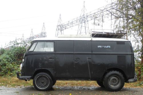 has the double door option and a non-factory small pop top roof engine is a 1641 with dual Dellorto 34B carbs starts right up, idles low, drives good, stops like a 49 year old vw bus stops door handles & misc hardware included in an old wooden box rear bumper w/ tow package (haha sorry :) minimal rust on this this bus, (as in very little if any at all) cargo floor is solid, rocker panels are solid, doors solid front floor has been repaired with fiberglass and looks good no major body damage check out the pics and place your bid Rear Wheel Openings were cut out back in the 1970's to fit balloon tires(i didn't do it ...) washington title, registered w/ collector plate Any Q's just ask - additional pics available on request Low reserve for a bus in this condition |