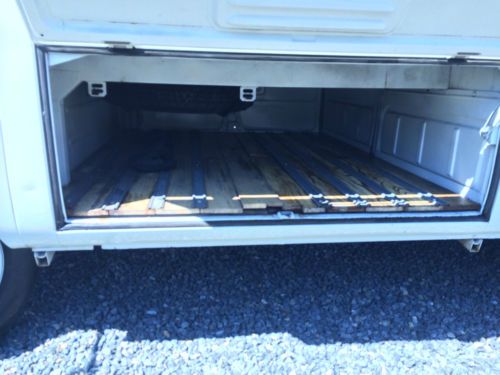 1965 Volkswagon Single cab. Converted from 6 to 12 volt. Porsche wheels, good tires, new voltage regulator, new front shocks, all window rubber in good shape, all lights, directionals, and horn work. Leather bench seat interior. A few scratches on the drivers side seat, a small dent in the roof, and a dent on the right rear. Frame is in great shape. The previous owner installed wood in the bed and treasure chest, with the plan to replace the sheet metal. This bus is in really great shape. Engine runs strong. No leaks. |