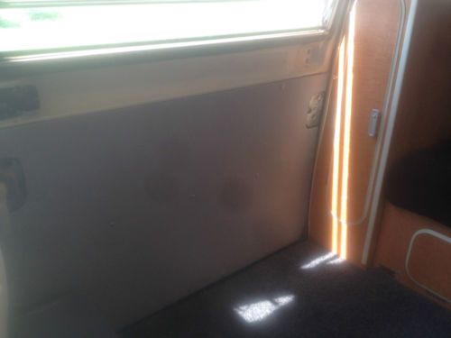 I have redone most of the interior on it. It has all new carpet and all new panels. Before I put the new carpet in, I sealed the entire floor with undercoating/rubber. Everything has been reupholstered. New Visors are installed. New radio. I also put a brand new Baltic Birch wood roof in it. I put new polished wheels and tires on it. Very few miles on these. At the time, I put undercoating in the wheel wells, so they look great. The bus originally had a pop up roof in the center. A roof was cut from another bus and riveted on this one. Most people dont even notice it. So, it looks like a cross between a transporter and camper. Obviously, it can be camped in still, as it has the bed and closet, yet it doesnt have the hassle of a leaking pop up tent. Mechanically, it is a sound bus and runs great. It was owned by a vintage VW mechanic before me. The gauges all work. I want to be as clear as I can, so here are my critiques: -I just installed new heater cables. They need to be attached at the heater boxes. -The paint looks pretty good, but I don't think it got the best paint job prep in the world. There are a few placed where there is a little surface rust under the paint. See the pictures. I gave an example. -There is a dent in the rear passengers quarter panel. That's the closet side, so its hard to see from. I have had quotes of $200-600 to fix it. Not a big deal. I would probably just spray the white half of the bus when this is fixed, and that would eliminate 90% of the paint issues I mentioned. -A few of the window gaskets could used replacement. The ones that I would do are the 2 front windows. They are $35 each. It has around 103,000 miles according to the odometer. It is a blast to drive. I prefer that the buyer pick it up in person and pay cash. This way, there is no doubts or surprises. It can be shipped at the owners arrangement and expense. Payment is due IN FULL within 2 weeks of auctions close. |