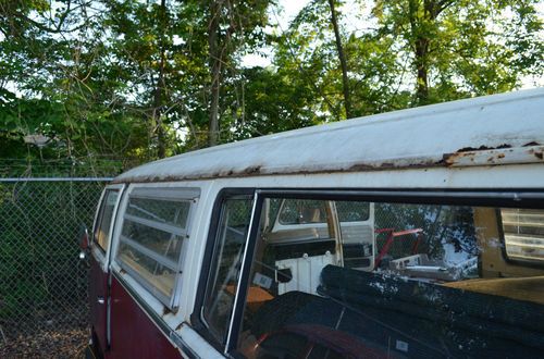UP for bid today is a heavy project volkswagen bus! Its one huge plus is that it comes with a lot of parts! Let me list them, TWO engines (apart) one is a 1600 dual port and the other is a 1700 dual carb (no carbs included). Both of the engines are NOT assembled. Most of the pieces are there. The 1600 did run before I took it apart. The rod bearings were showing copper and the crank looks like it needs to be reground. The heads for the 1600 are included and look OK. I can't see any cracks. I will include most of the fan shrouding for both engines plus a 1500 non doghouse shroud from another project. The 1700 was bought from another seller. It had been sitting for awhile and had gotten water into one cylinder. The engine would turn but would stop at one point. This was because the water in the one cylinder had corroded the aluminum of the head and wouldn't allow it to reach TDC. No carbs are included in this sale. The 1700 block, which btw is a type four engine, seems to be fine. Along with the crank. IT doesn't seem like the bottom end of the 1700 needed any machining work but that will be up to the buyer. The bus does have it's windshield. It is located in the back. You will also get two middle seats and the rear seat, two used but good head exchanges for a 1600 and other misc parts! The bus only has 21,000 miles on the transmission! Such a shame for all the body rot.. The rain gutters are probably going to be the hardest to replace. Along with the panel under the windsheild, the doglegs, parts of the floor are gone as well. There is plenty of rust! If you have any questions feel free to email me. The bus and parts are being sold AS A WHOLE LOT. I will not be splitting anything up! Bus needs to be gone by july first so if you have any trouble getting a trailer let me know, we might be able to work something out. Thanks!