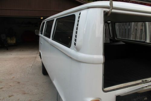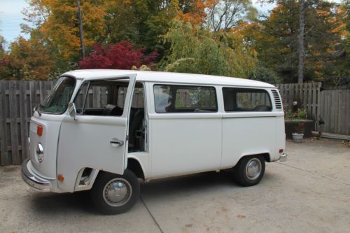 Up for sale is a 1974 VW Bus that is in good shape! The bus has spent at least the past 10 years in the midwest, always garaged in the winter months. White with black seats and carpet, headliner is in great shape as it looks new! Automatic with a 4 cylinder engine I bought brand new from a company out of Milwaukee. Only a few thousand miles on engine since it was installed. Started was rebuilt 11 months ago as well. Hold 6 adults comfortably. Any questions, please free to ask. Thanks.